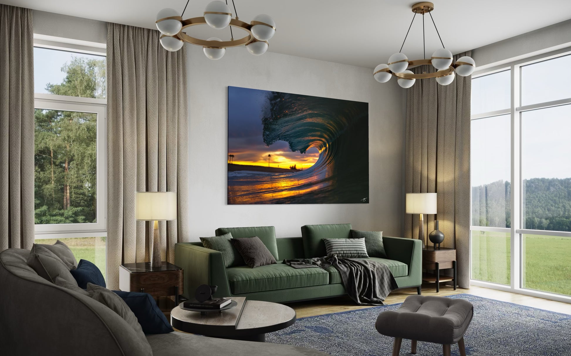 Captured from within the ocean’s pulse, Golden Barrel by Beau Jesse Johnston reveals a perfect wave illuminated by the fire of a California sunset. Shot from the waterline, this limited-edition fine art print captures the harmony between light, motion, and power — a moment that exists for less than a second yet lives forever through the photograph. Ideal for collectors drawn to the beauty and rhythm of the sea.