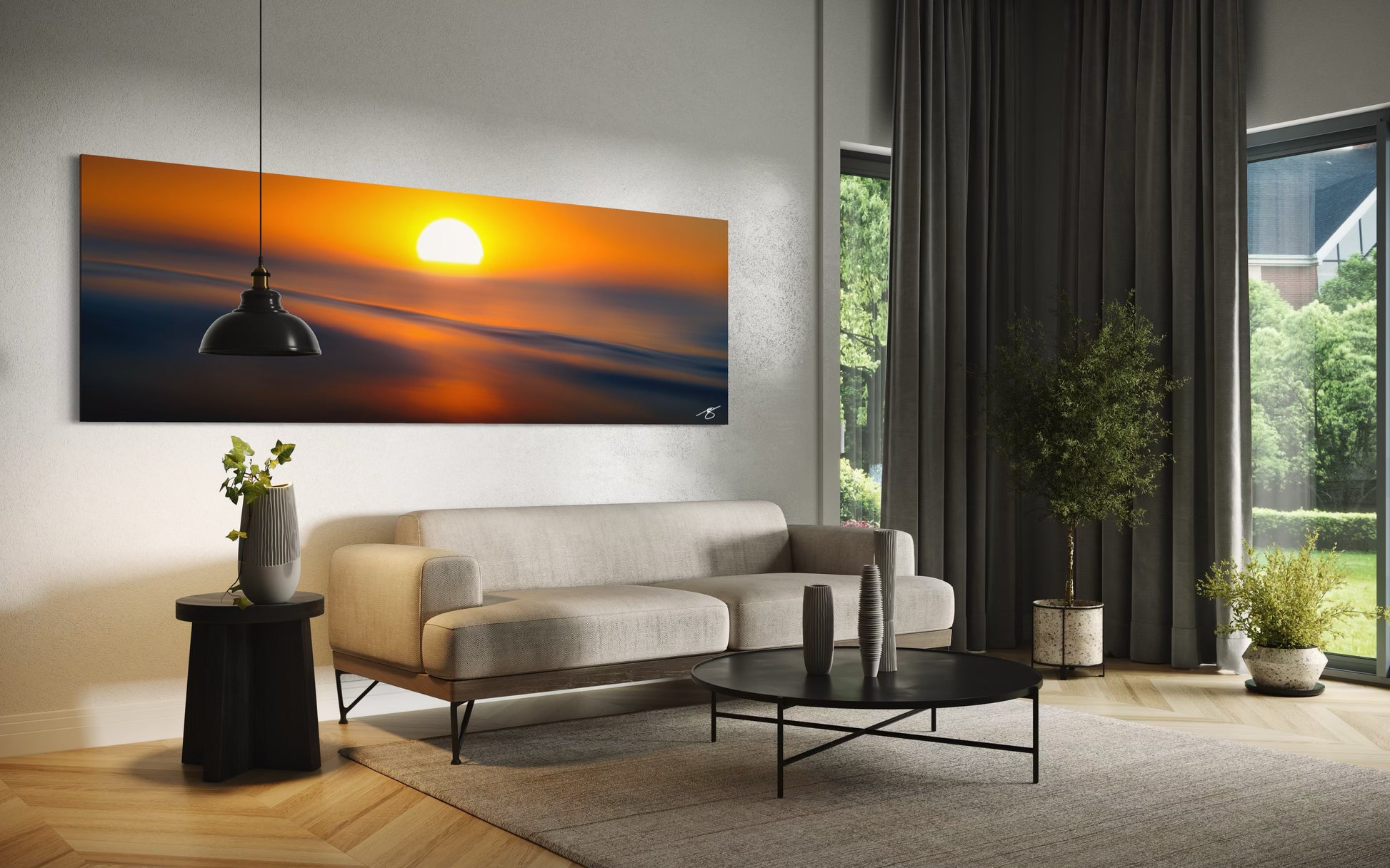 Solar Veil by Beau Jesse Johnston reveals the quiet poetry of the Pacific as the sun dissolves into the horizon. Shot from the waterline, this fine-art photograph transforms sea and sky into flowing bands of gold and indigo — an ethereal moment between light and motion. A minimalist coastal artwork designed to bring serenity, warmth, and meditative calm to any modern interior. Limited to 25 editions.